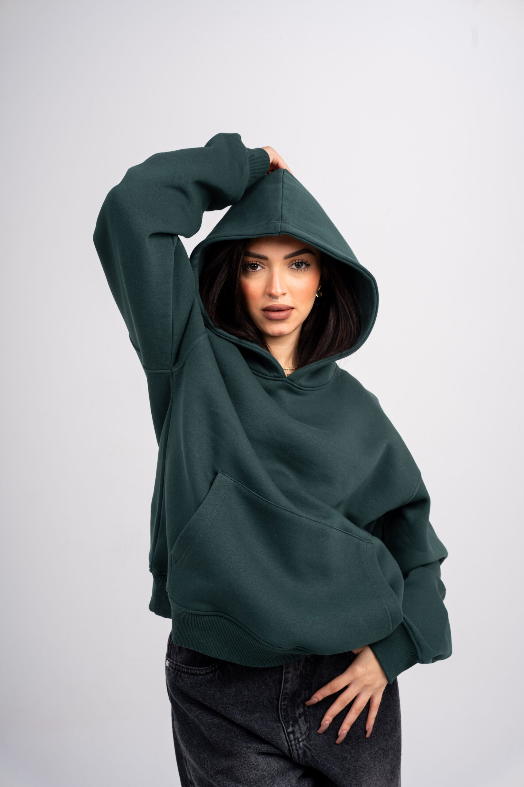 Plain Dark Green Oversized Hoodie